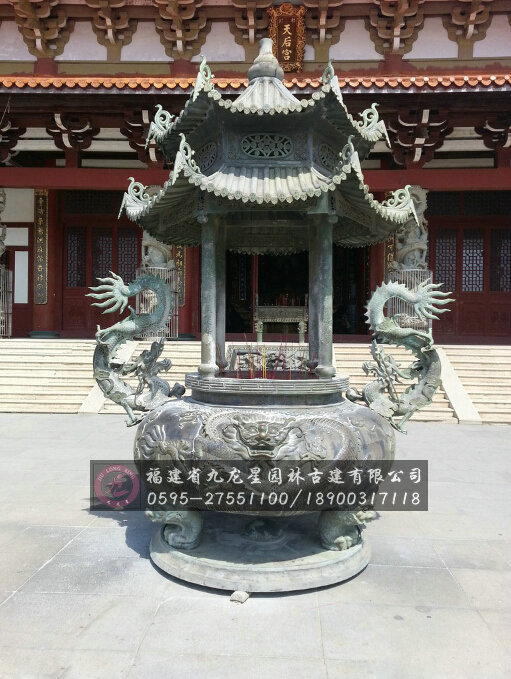 石雕香爐采用優質青石精雕細琢而成的,香爐兩邊的龍栩栩如生。香爐一般用來盛載香支,以作日常供奉神明之用。首先,石雕香爐不能對著門墻,最好是正對著大門的位置;二:香爐要擺在供奉的佛像前面,不能放在后面要擺放端正,不能歪歪斜斜的;三:有的人用香爐,為了防止香灰落到外面,在上面用了個蓮花狀的圍子,他的邊緣很薄很鋒利,如果它的高度正好對著你供神像腿腳部位,這是大忌的。若你的神像遠遠要高于它,那么問題不大,佛壇也好神壇也好,要常常保持干凈,尤其香爐口邊也要隨時保持干凈。
